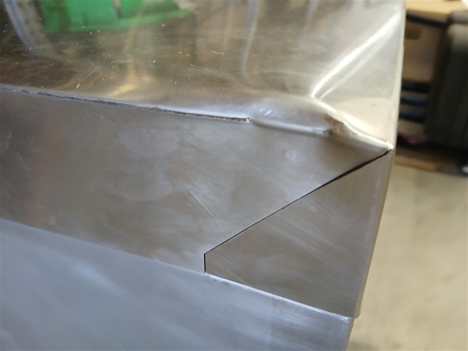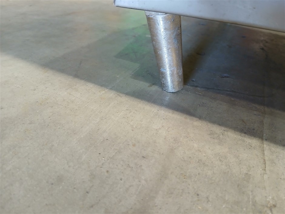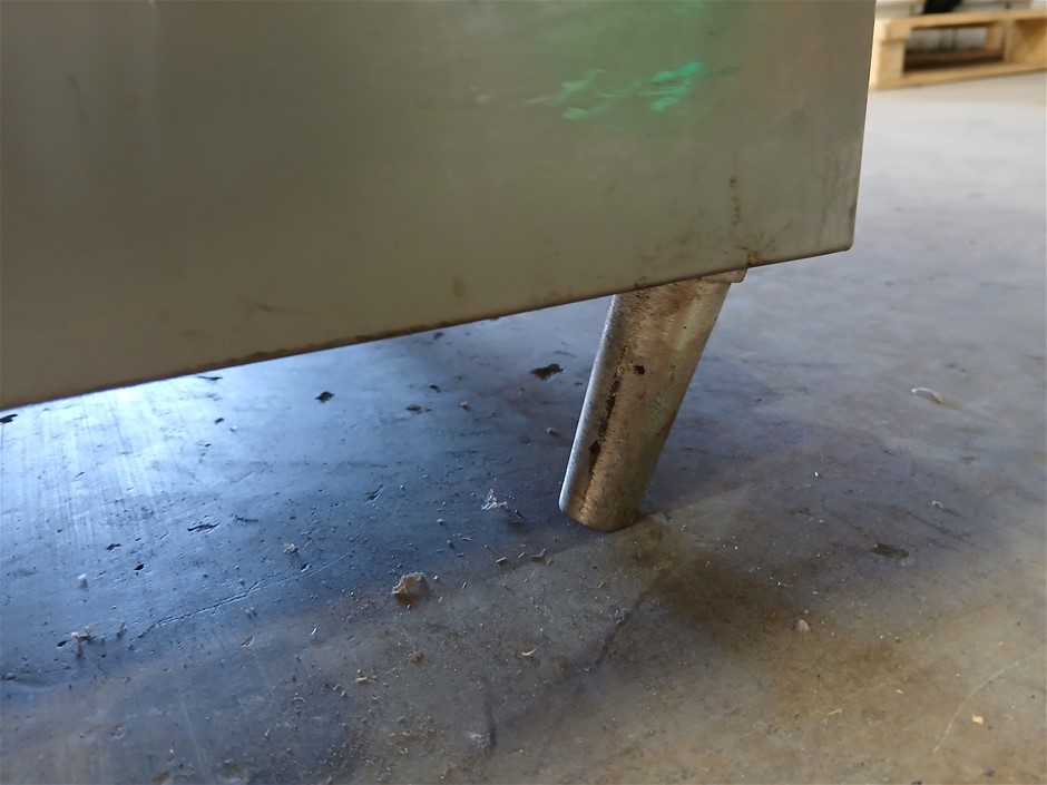 • Damage: Missing 1x leg. Remaining 3x legs are damaged. Missing front bottom panel. Back, missing rivets. Front corners, have siginificant dents. Scrapes, scuff marks and scratches. In poor condition