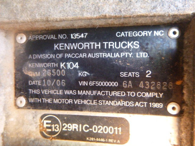 2007 Kenworth K104B 6 x 4 Prime Mover Truck