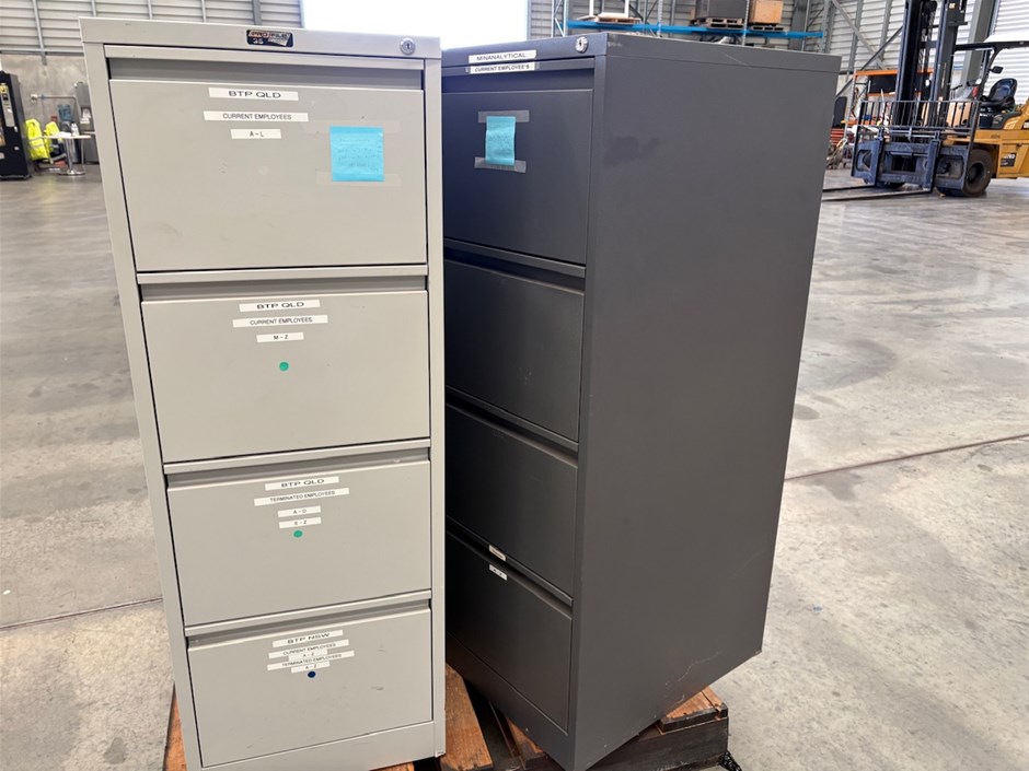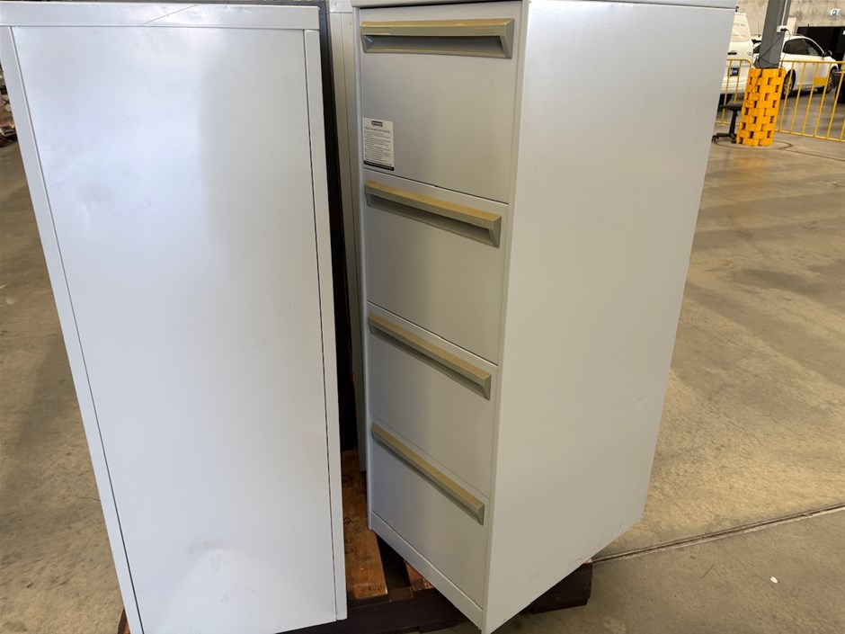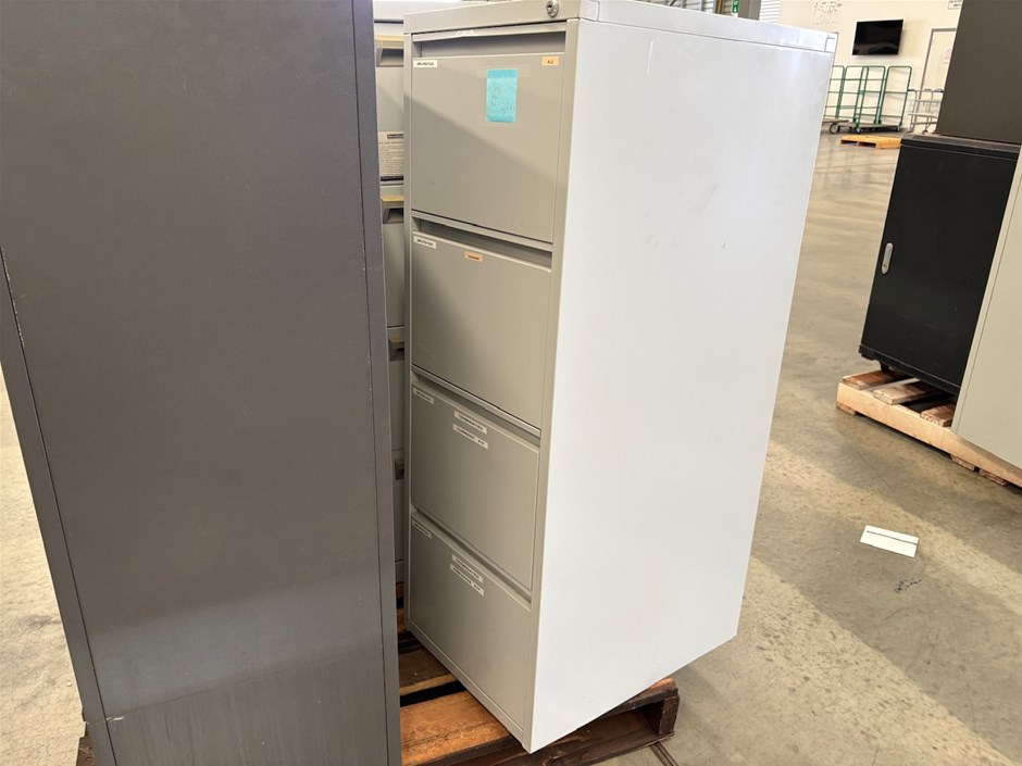 • 4x Filing CabinetsAll lockable but no keys included.3 are unlocked and 1 is locked.