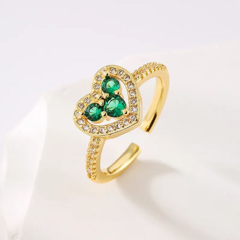 Elegant 18K Yellow Gold plated Emerald Ring Adjustable