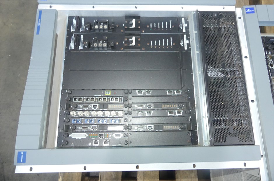 3 x NM-4/155SMIRE 4 Port OC-3 SM IR Module4 x Marconi Communications SCP-P5-266 Switch Control Processor Module2 x Marconi NMCE-6/E1A 6-Port E1 2.048Mbps CES Module1 x Marconi Fore NMCE-8/DS1E1E, 8 port T1/E 1.544 Mbps and E1 2.048Mbps Module1 x TCM/E1-3 Timing Control Module1 x Marconi NM-4/ETH-TX, ASX-1000 4-Port Fast Ethernet1 x Marconi NM-4/E3E 4 Ports E3 BNC Module