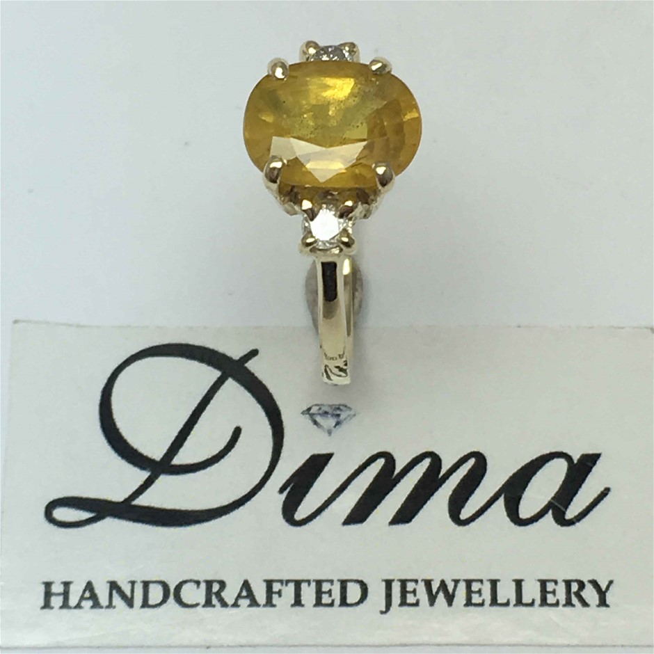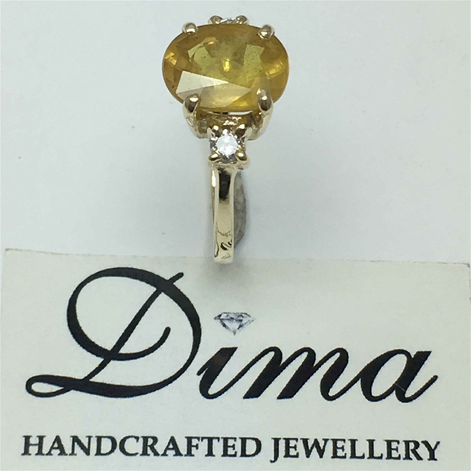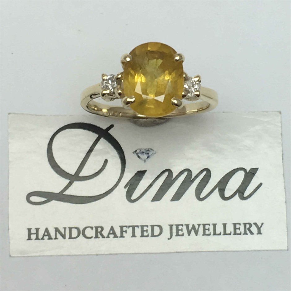 9ct Yellow Gold, 3.68ct Sapphire and Diamond Ring