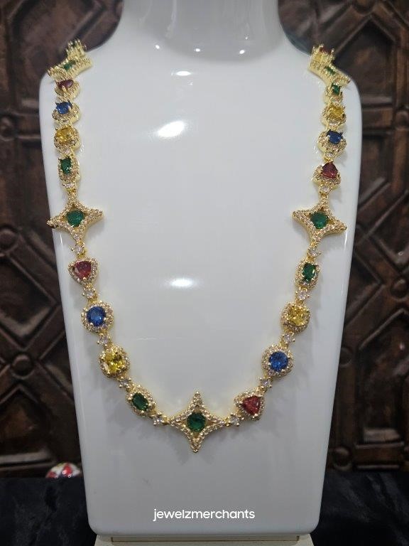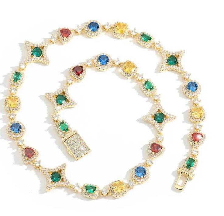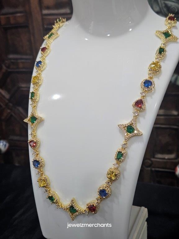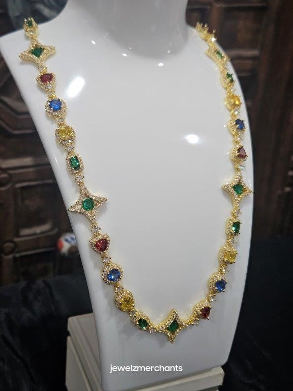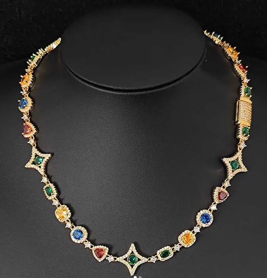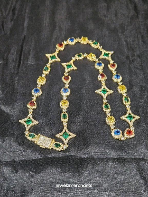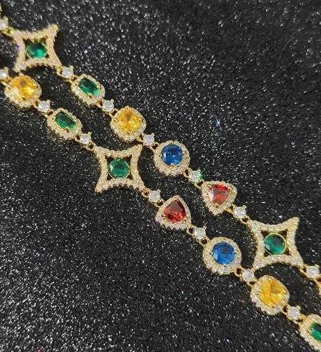 18k Yellow Gold Filled Multi Stone Chain stamped(18K)-55cm-Quality Guarantee