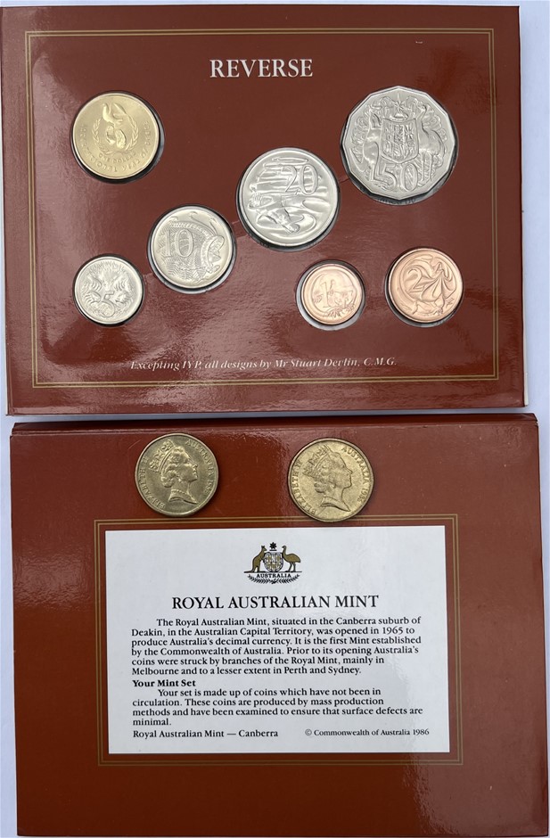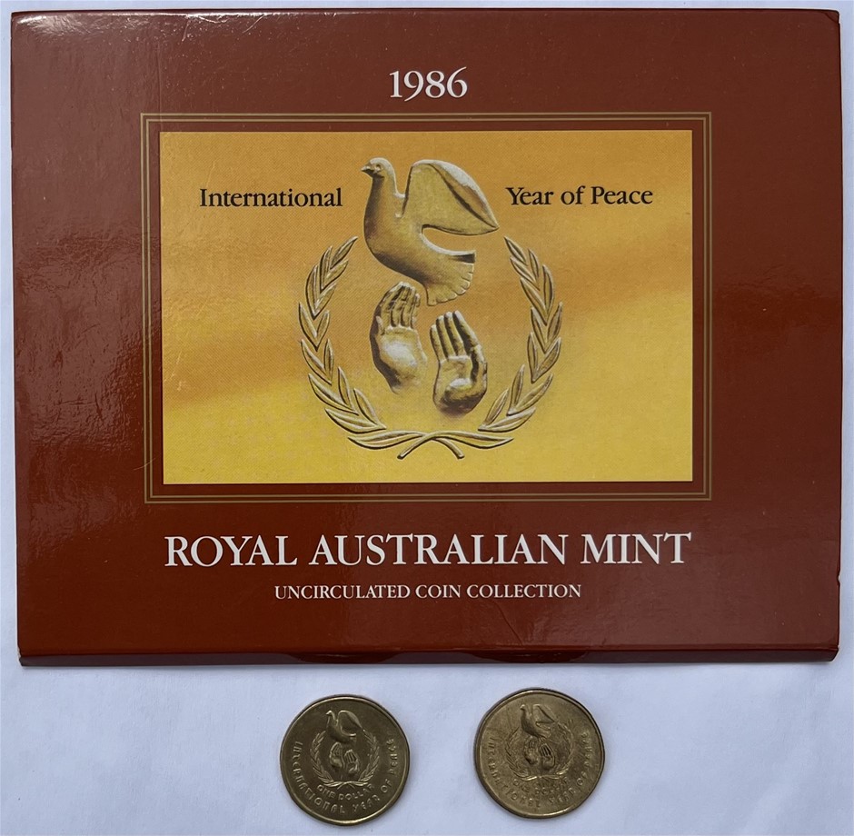 Australia: International Year of Peace 1986: UNC 7 Coin Set, and 2 x circulated $1 coins