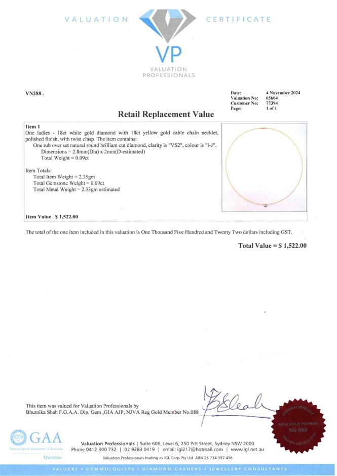 18ct Cable With Dia