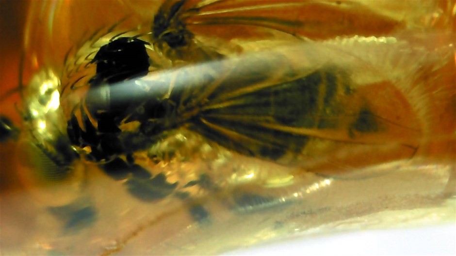 3 MILLION YEAR OLD PIECE OF AMBER FILLED WITH A PREHISTORIC BEETLE