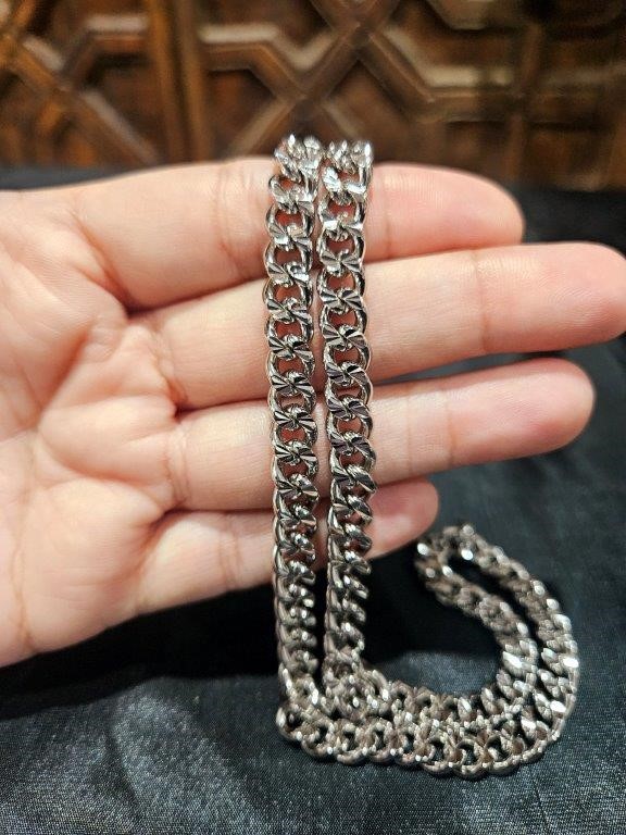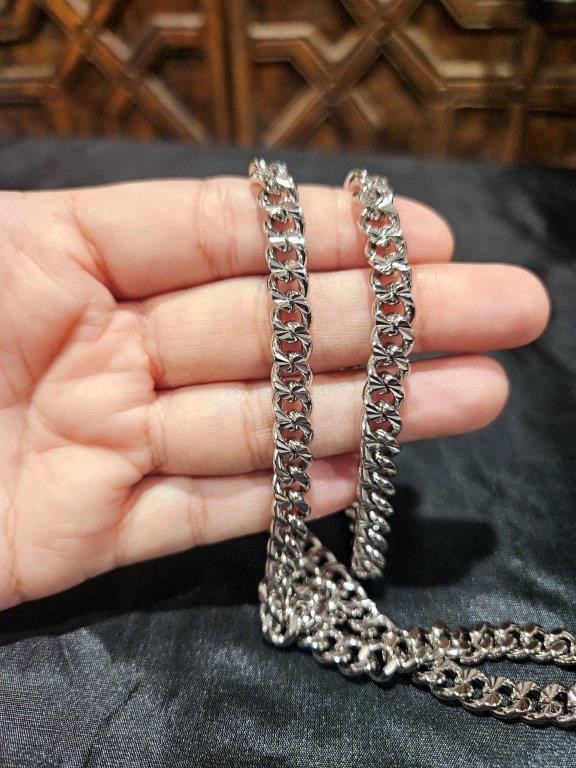 Upgrade your jewelry collection with this luxurious Italian platinum-plated gold-filled Cuban chain, designed for both women and men. Crafted in Italy and stamped ``PT950``, this durable, high-shine chain offers timeless style and lasting quality.