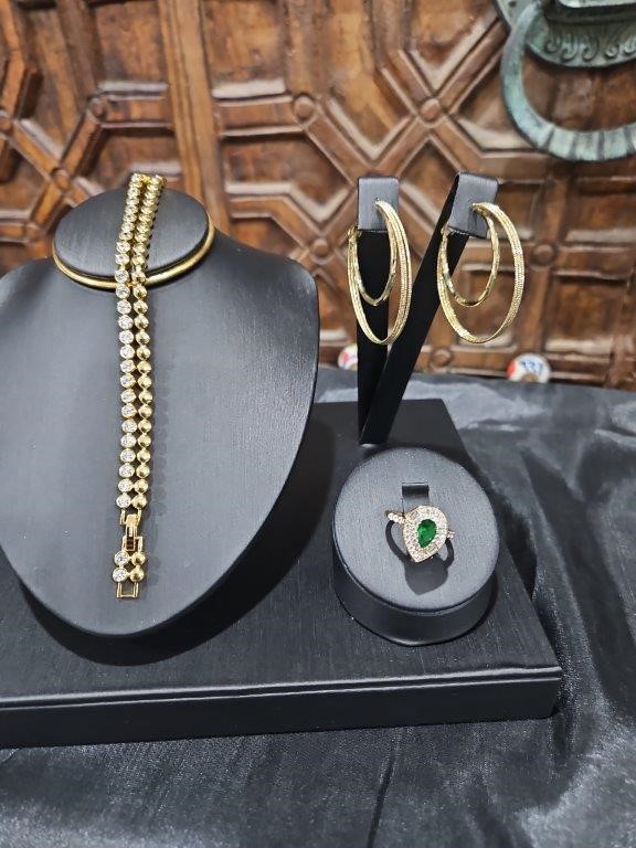 3pcs x 18KGF/Italy Stamped Yellow Gold Filled Bracelet & Ring & Earring-clearance sales
