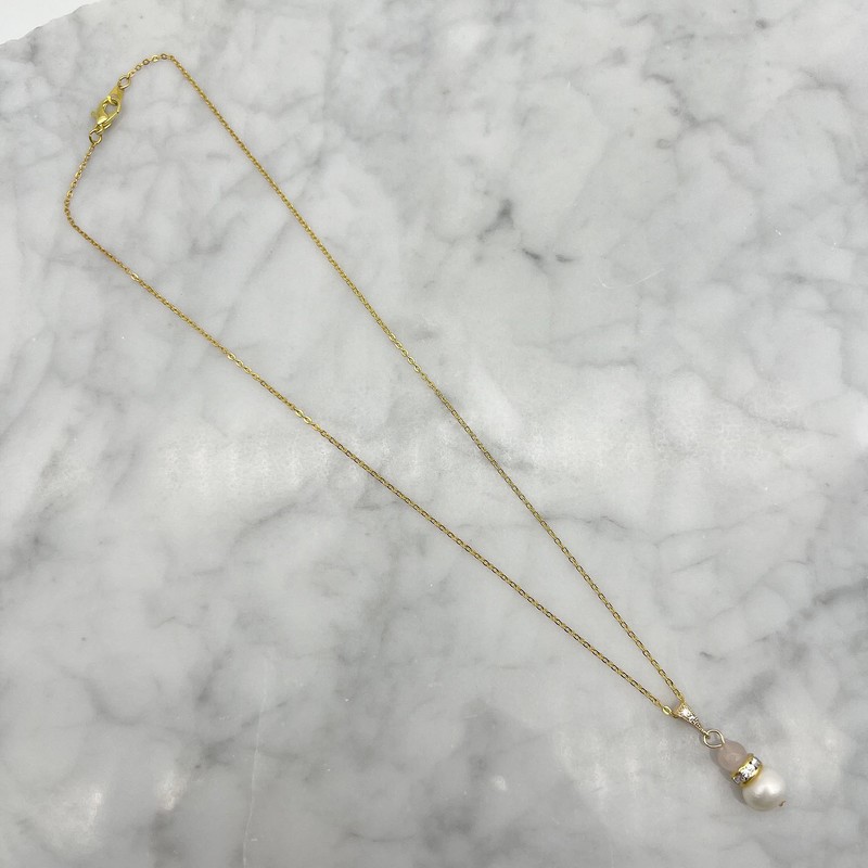 GenuinePearl & Rose Quartz Gemstone Gold Plated Pendant Necklace