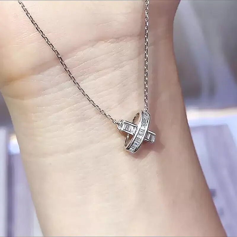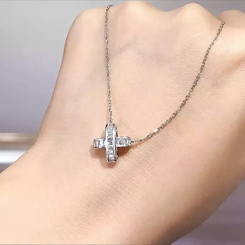 Elegant 18K White Gold plated White Cz Cross Pendant Necklace