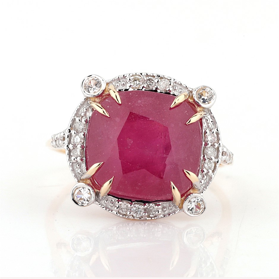 Yellow Gold Natural Ruby / Natural White Topaz & Diamond Ring with Valuation