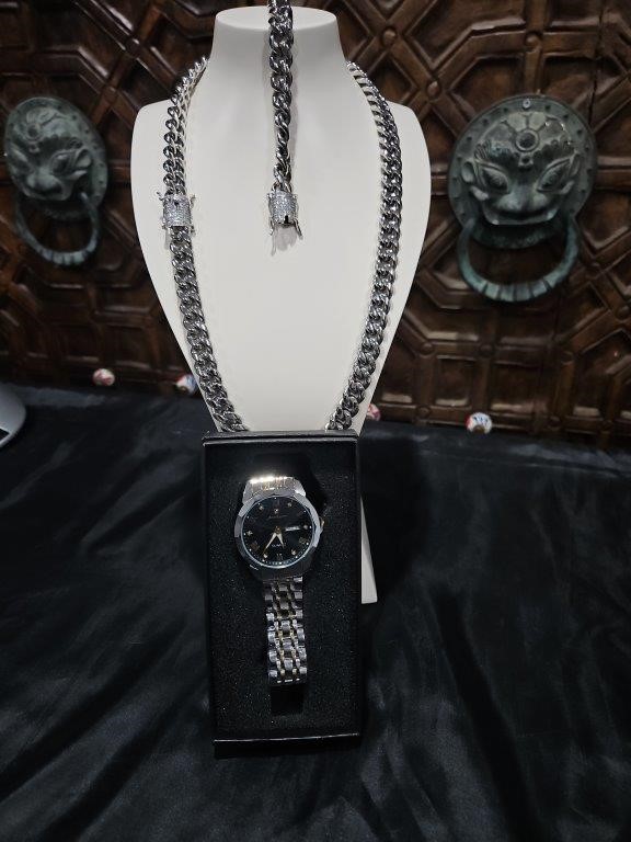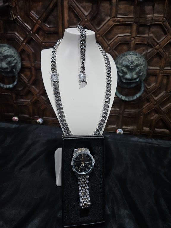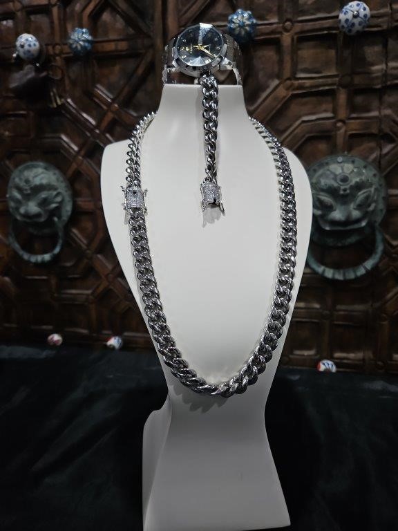 3pcs x 18KGold-Plated/Italy Stamped White Gold Filled Chain & Bracelet & Watch-