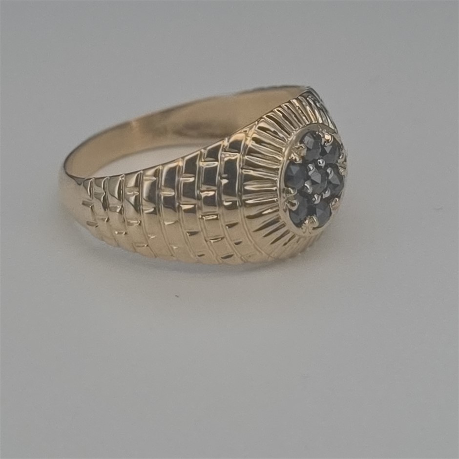 Yellow Gold Natural Black Diamond & Diamond Ring with Valuation