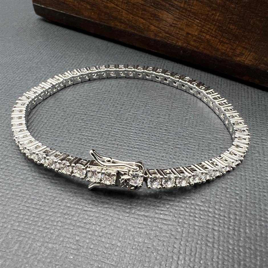 Opulent Galleria - 18k White Gold-Filled Tennis Bracelet with Round Facet Cut Simulated Diamonds – 20.3cm
