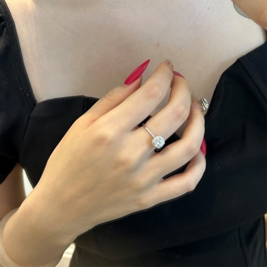 1.00ct Round Cut GRA Certified Moissanite 925 Sterling Silver Ring - Size 9