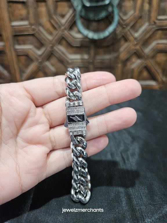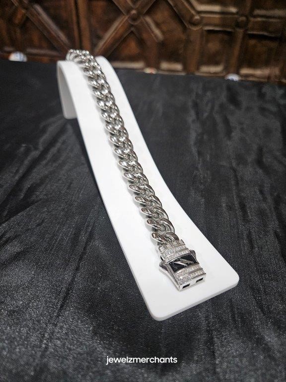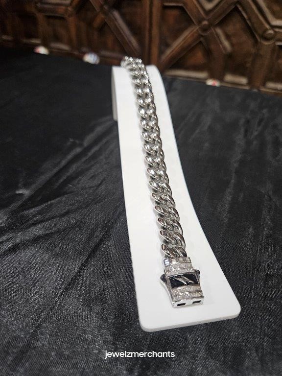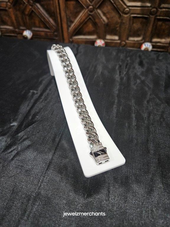 • 18K Triple White Gold Plated Cuban Chain Bracelet with simulated diamonds stones