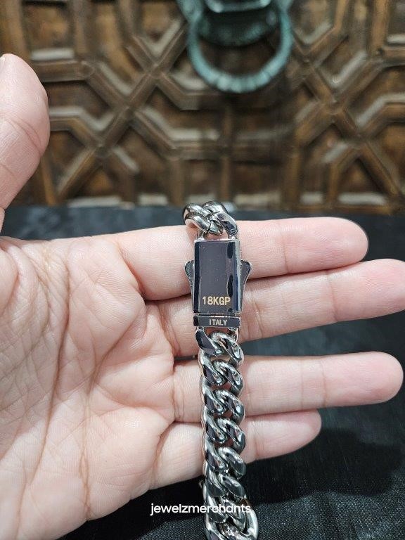 Italy 18K White Gold Plated Cuban Bracelet (18K/Italy)stamped-20cm-12mm