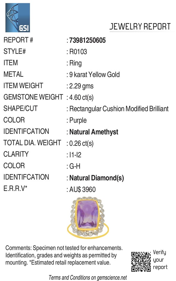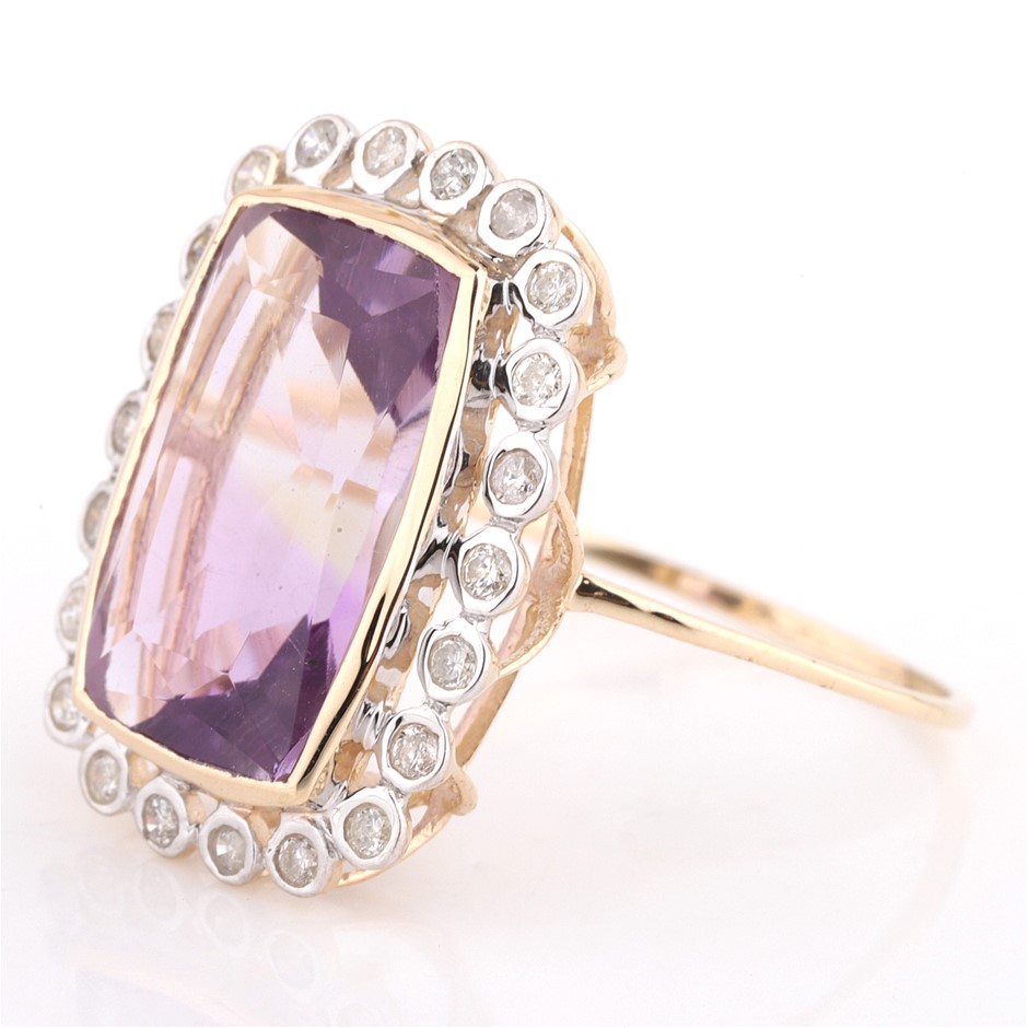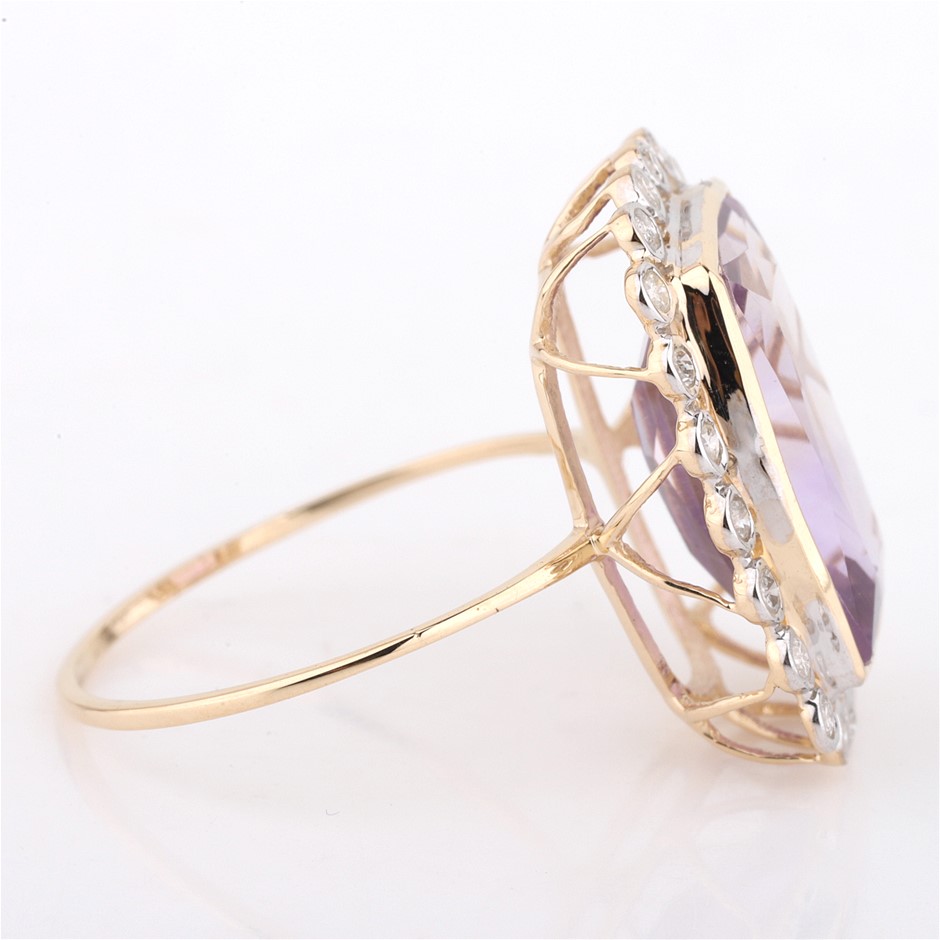 Yellow Gold Natural Amethyst & Diamond Ring With Valuation