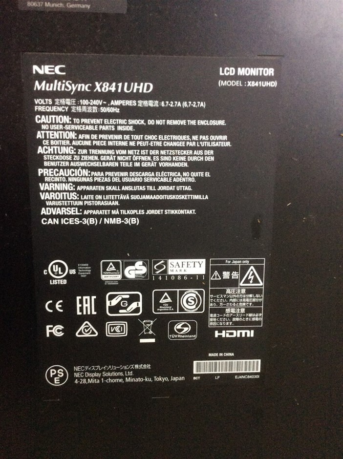 NEC X841UHD LCD Monitor