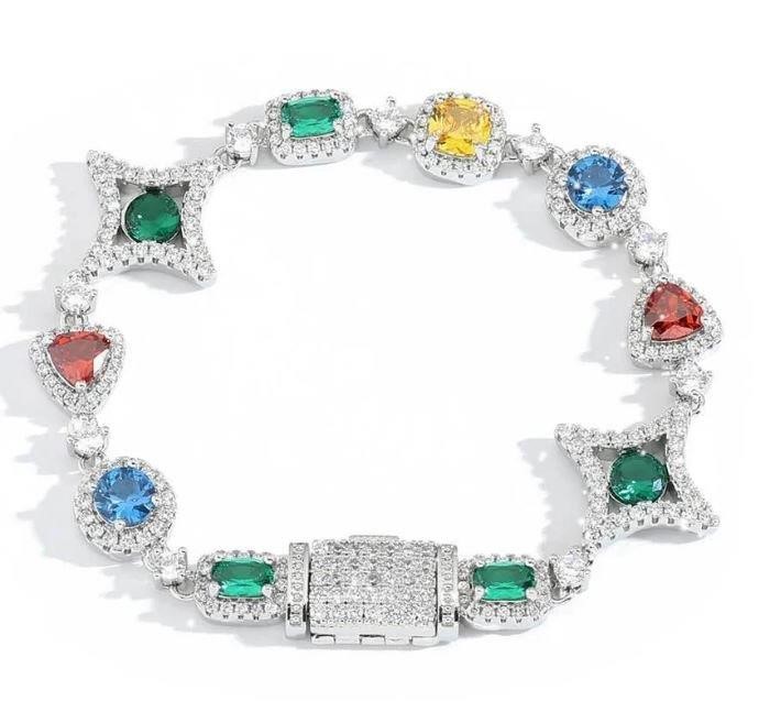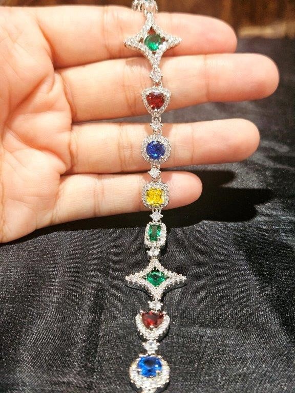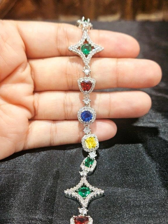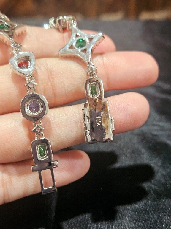 18k white Gold Filled Multie Colour Bracelet stamped(18K)-17.5cm