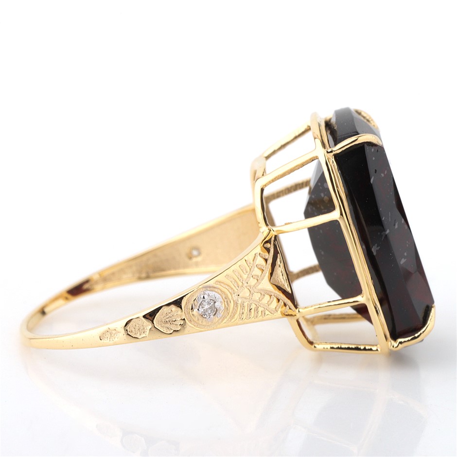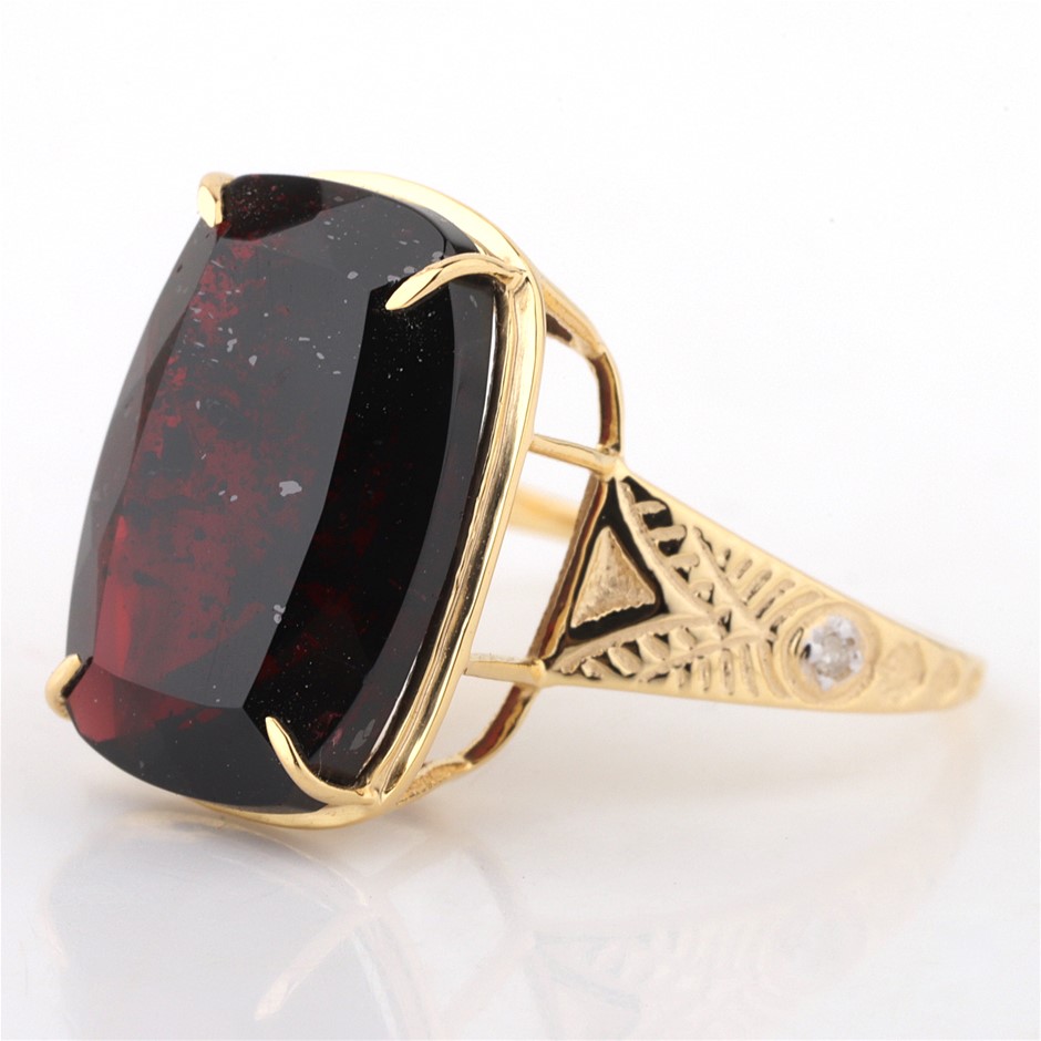Yellow Gold Natural Garnet & Diamond Ring with Valuation