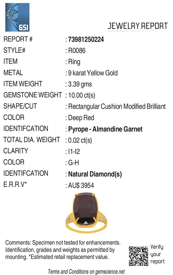 • Accompanied by Gemmologist Report issued by Gemological Science International (GSI)..Replacement retail value:$3954