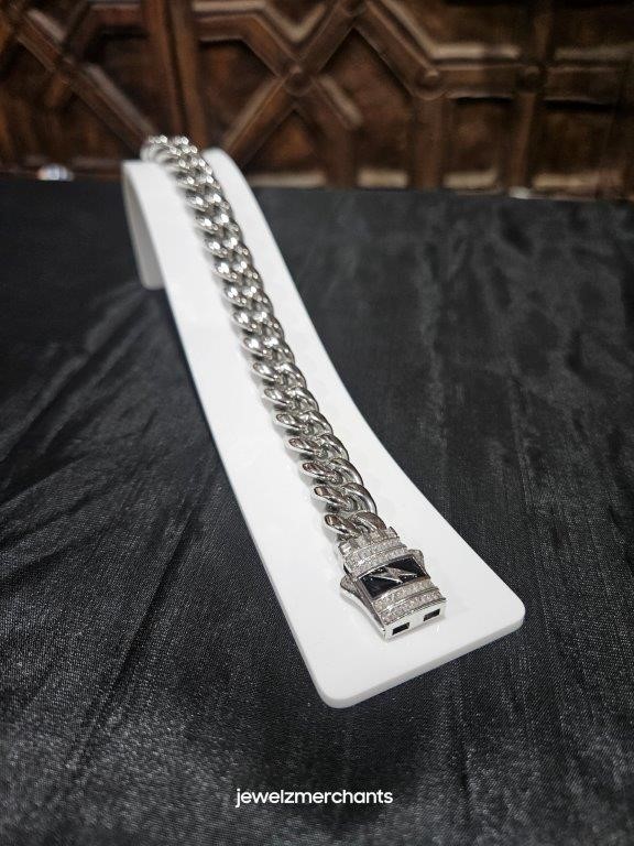 • 18K Triple White Gold Plated Cuban Chain Bracelet with simulated diamonds stones
