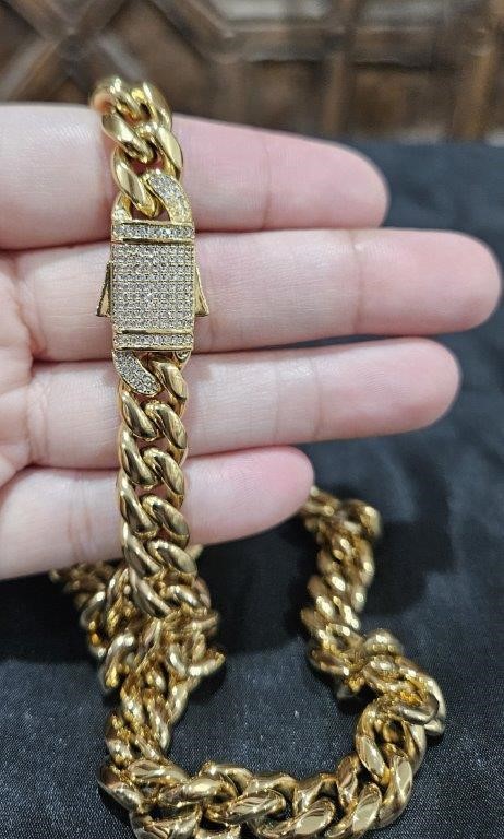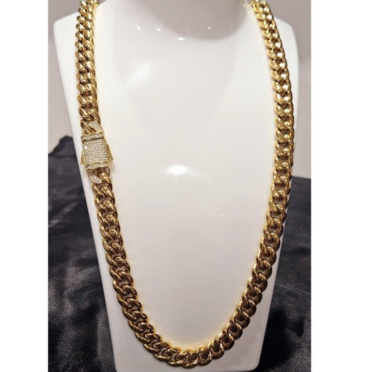 Italy 18K Triple Yellow Gold Plated Cuban Chain (18KGP/Italy)stamped-55cm-14mm
