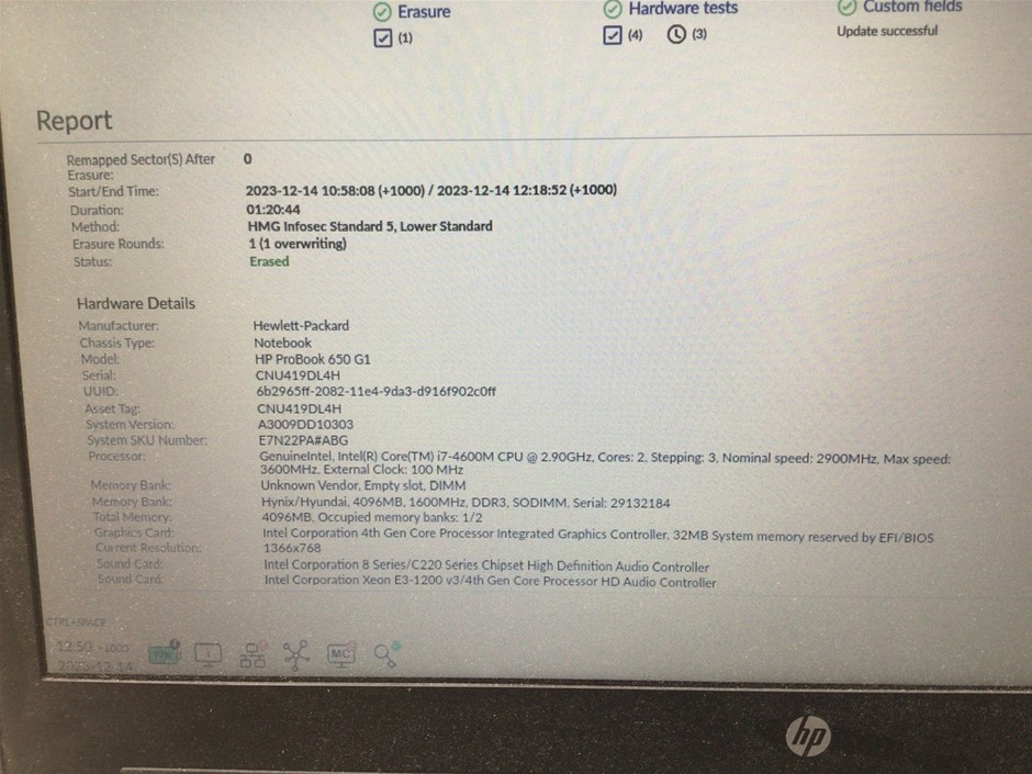 • Hewlett-Packard ProBook 650 G1 Laptop. Intel i7-4600M CPU. 4GB RAM. 15.4 inch display. 500GB storage. No 240 volt AC adapter.