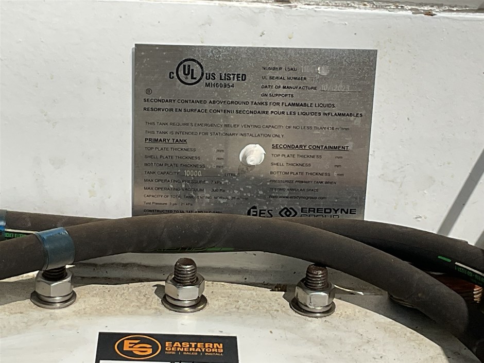 • C15 Integral Fuel Tank, and Tank base. 10,000 litre capacity, direct reading fuel level gauge. Date Manu 10/2023, Max Operating Gross Mass 9250.