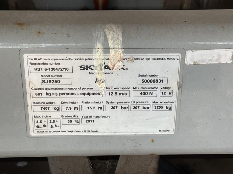 • Damage: Scissor Lift non operational, corrosion evident, electrical issues, general wear & tear