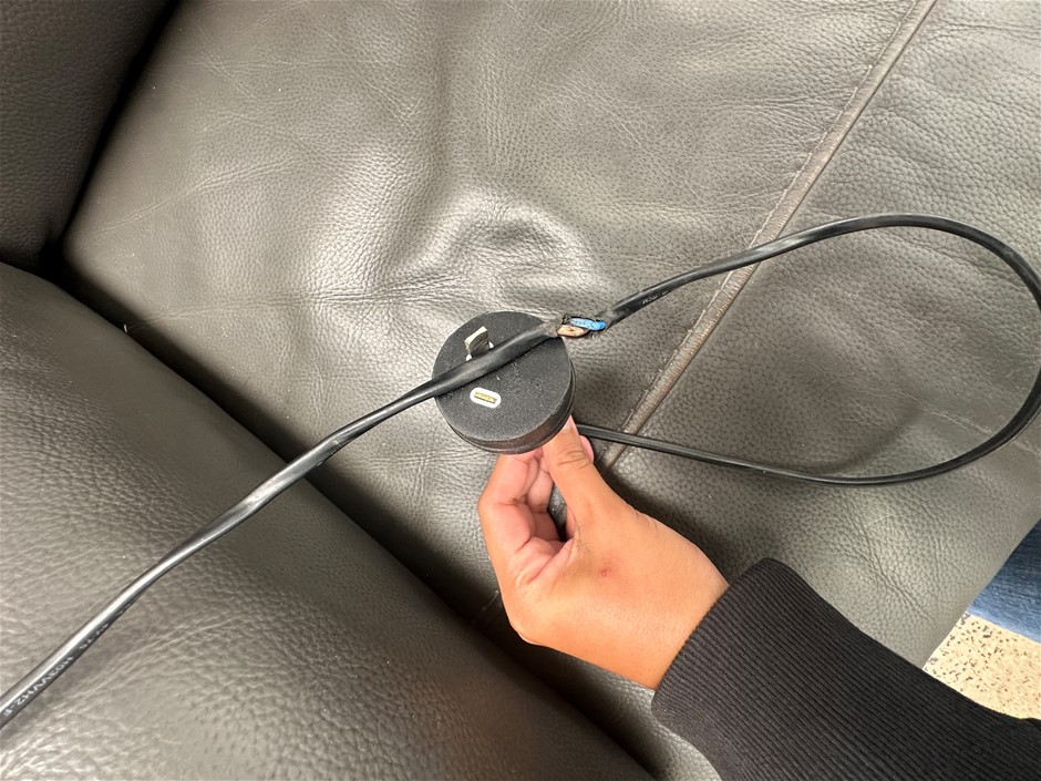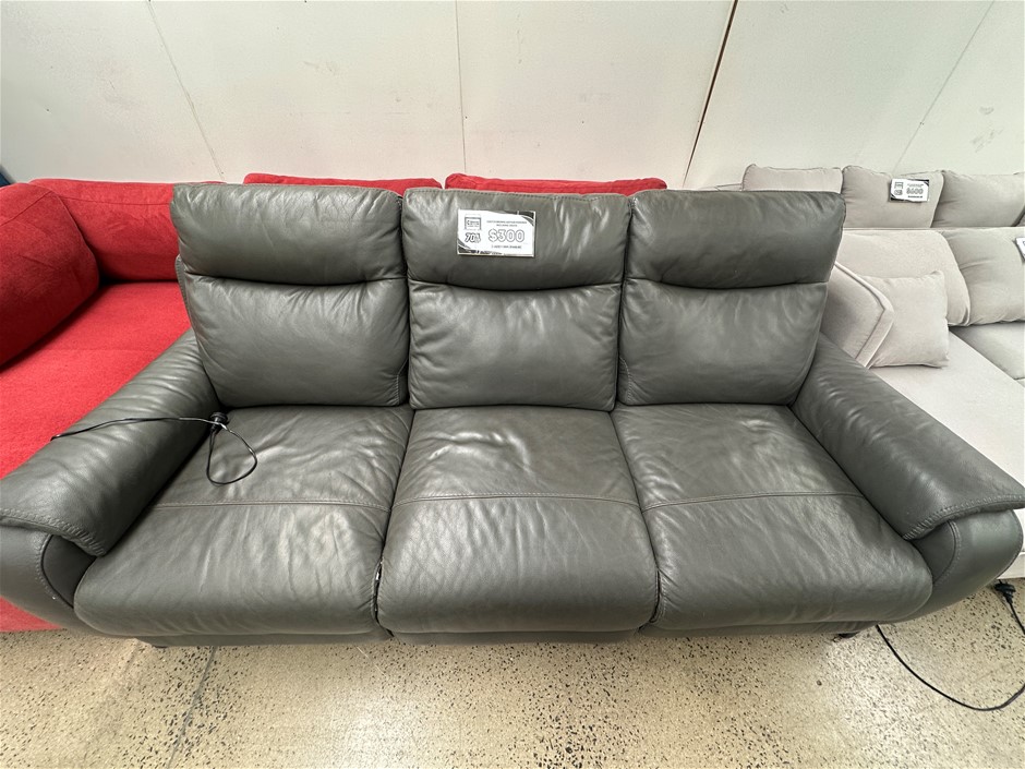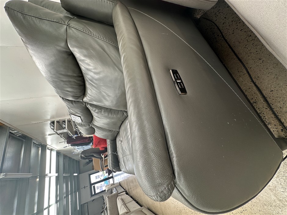GILMANCREEK Kuka 3-Seater Leather Power Sofa With Reclining & Power Headrests, 210 x 90cm, Dark Grey. NB: Used, plug on left side needs replacement. Photo as is (Code: 98866-U) (139343-4)