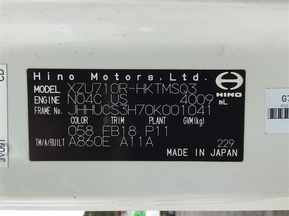 2011 Hino 300 4 x 2 Pantech Truck