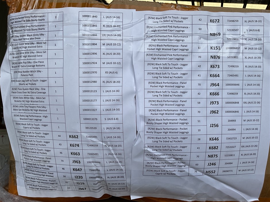 Please Note: Displayed Stock lists should be used as a guide only – quantities are not confirmed. Manufacturing Seconds (i.e. may be labelled incorrect sizing or mis-stitched faults). Buyer is aware they are purchasing as-is where is.