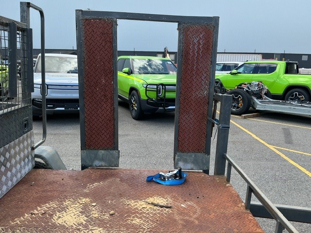 • Damage: Some areas of moderate rust. Rear gate/ramp misaligned and is difficult to close.