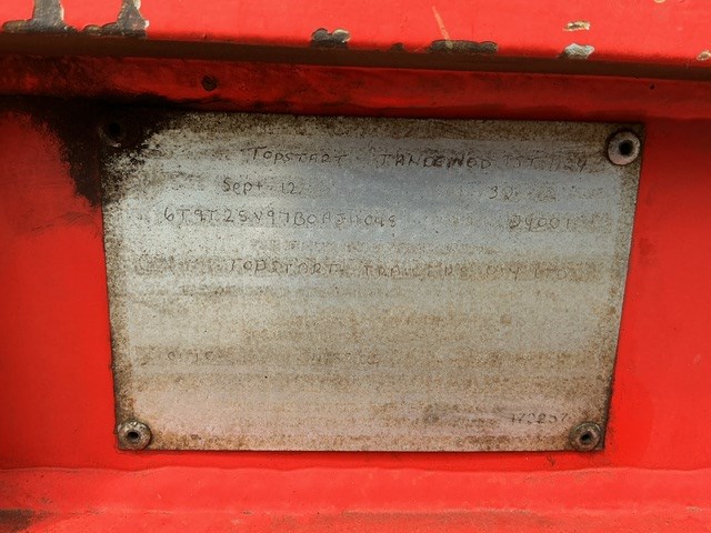 • VIN: 6G9RCD2ECX1AC6837 (Data plate on dolly trailer is not legible - VIN has been provided)