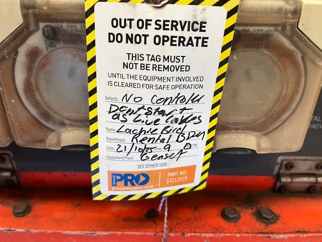 • Damage: Tagged outmissing parts, exposed wires, unsafe to start.Unknown running condition