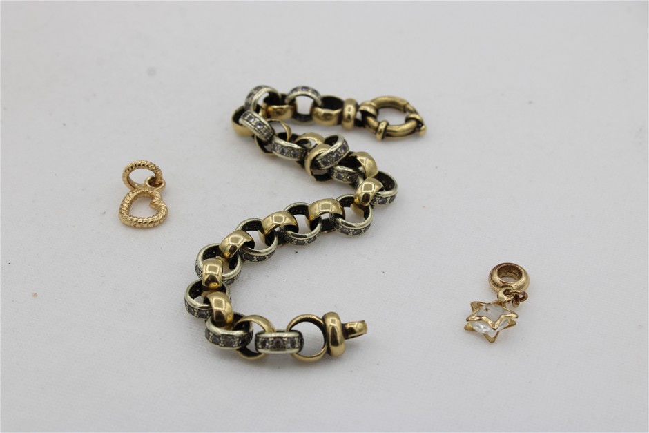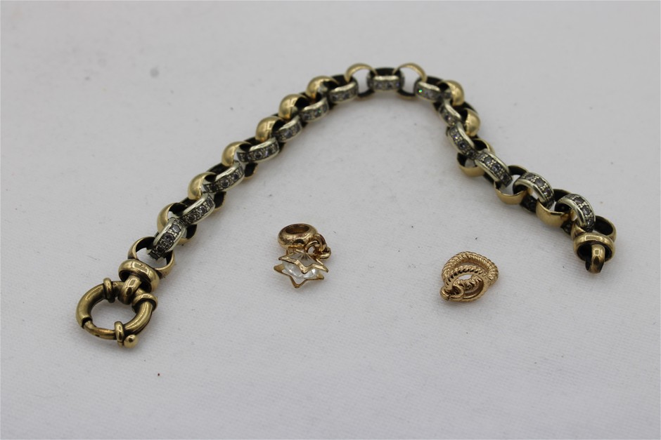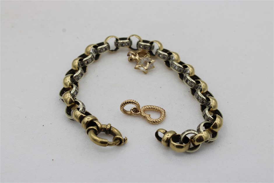 1 x Stamped 9ct Yellow & White Gold, Cz Set Chain Bracelet