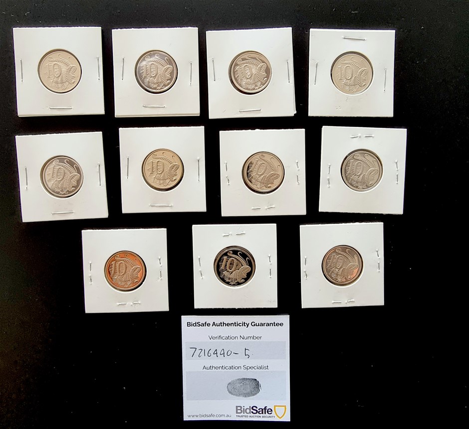 Set Of Australian Proof Ten Cent Coins
