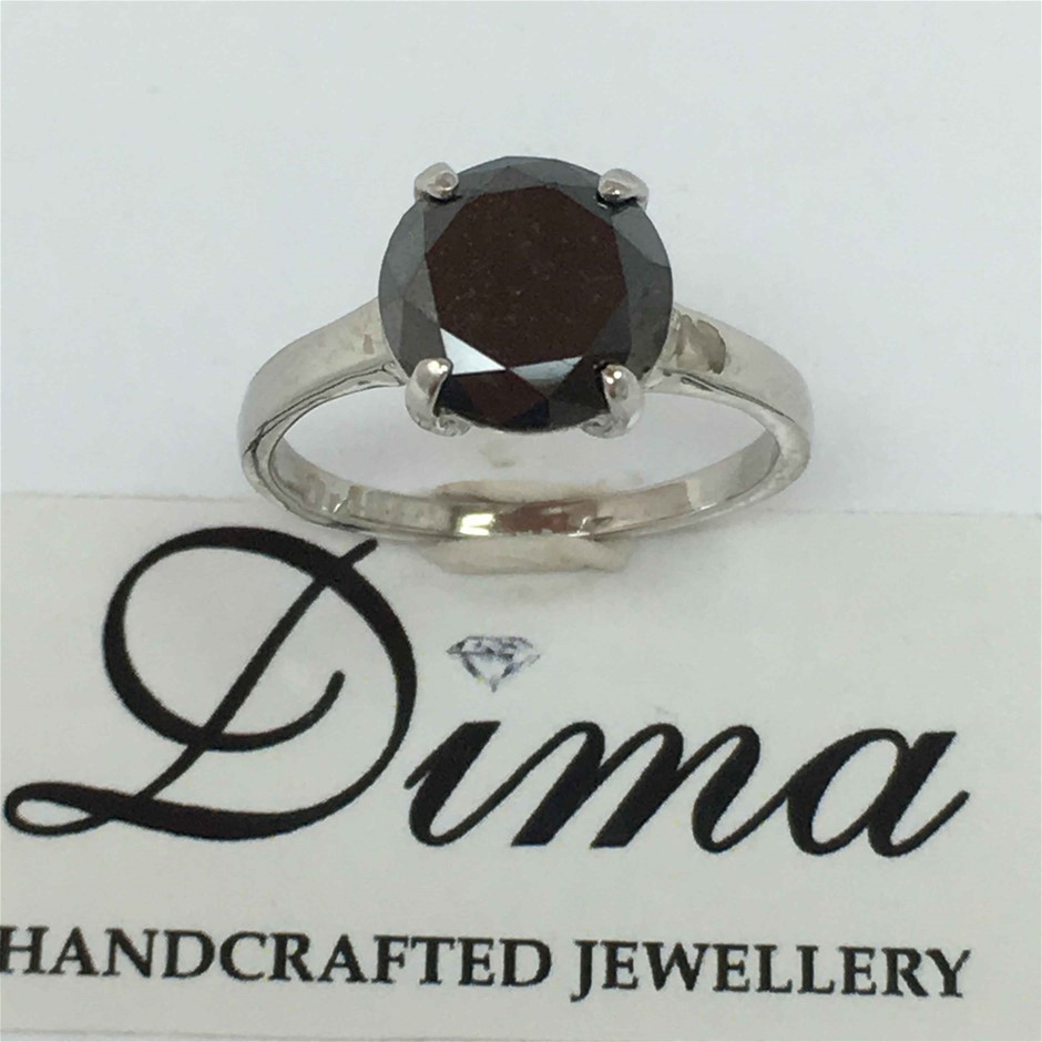 • One claw set treated round brilliant cut diamond, colour is ``fancy treated black``.