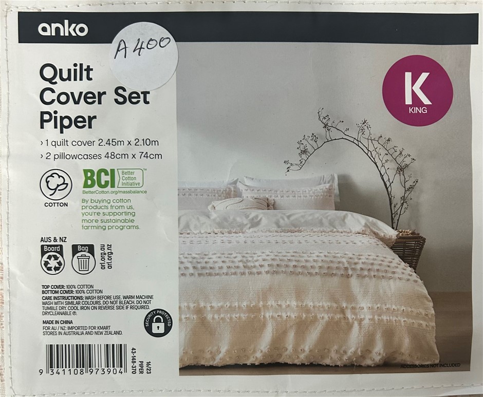 Anko King Quilt Cover & 2 Pillow Case Set Piper