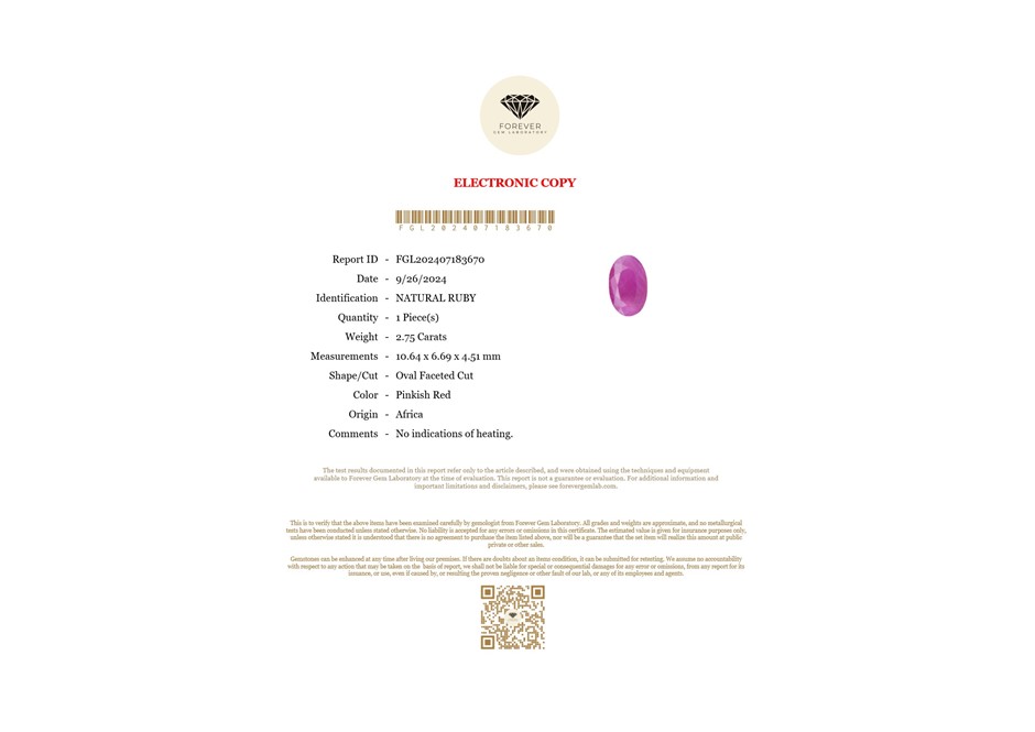 Part of Sale FGL Certified Rubies Gemstones Collection
