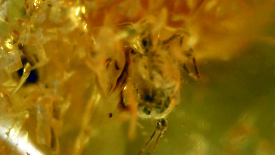 3 MILLION YEAR OLD PIECE OF AMBER FILLED WITH A PREHISTORIC SPIDER