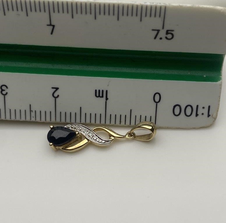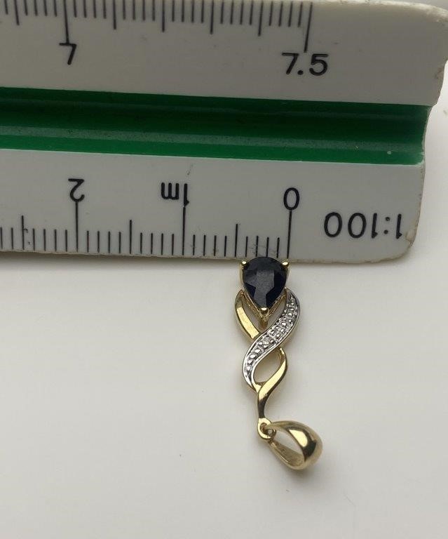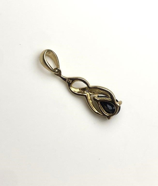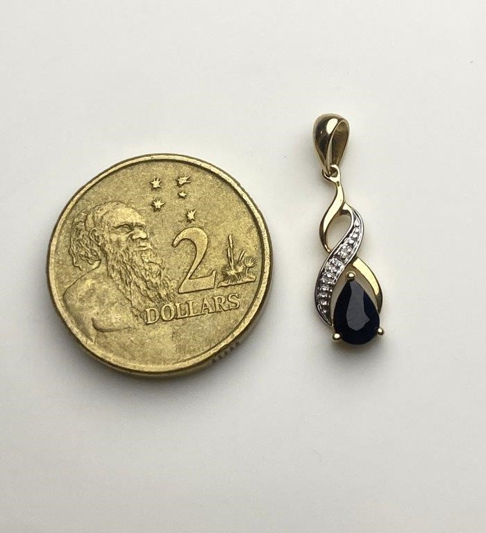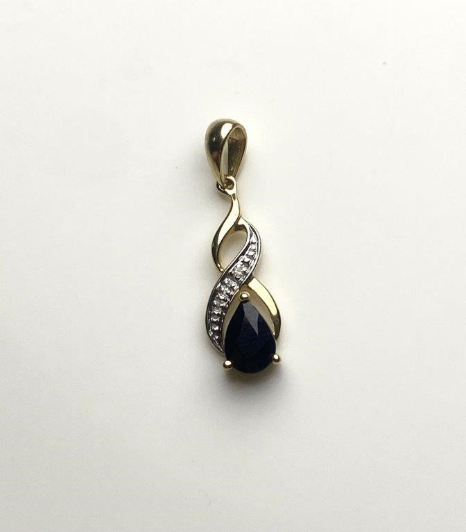 Solid 9ct Gold Natural Sapphire & Diamond Twist Pendant