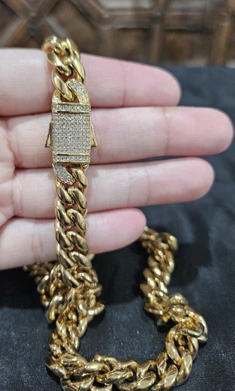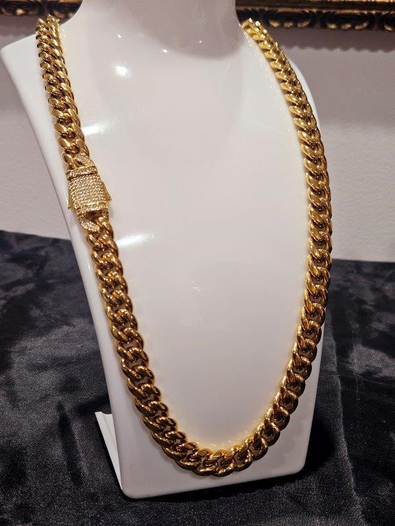Italy 18K Triple Yellow Gold Plated Cuban Chain (18KGP/Italy)stamped-66cm-14mm