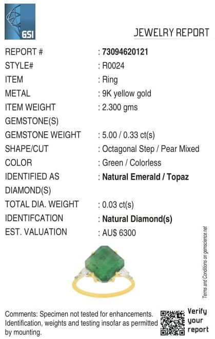 Yellow Gold Natural Emerald & Diamond Ring with Valuation