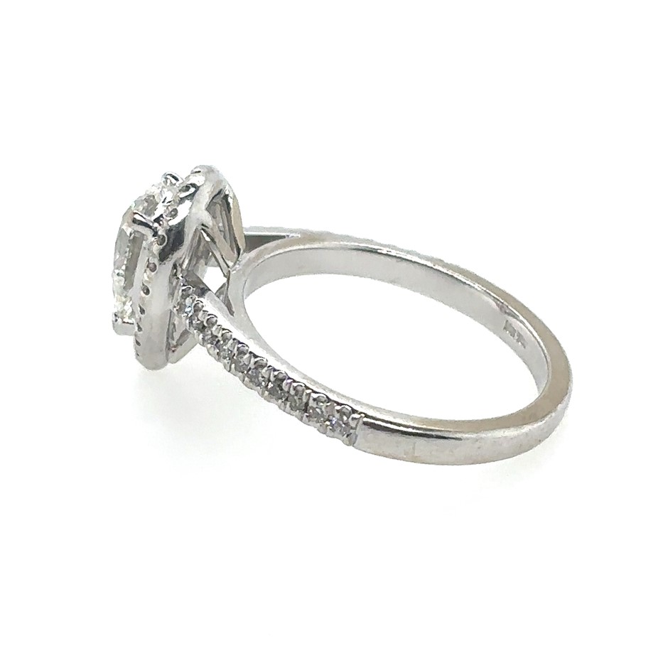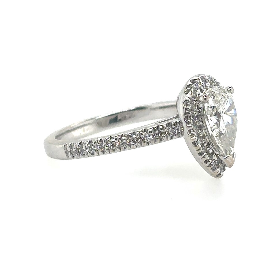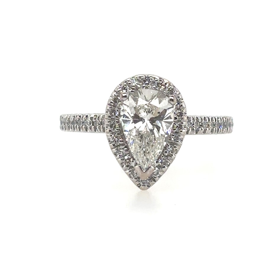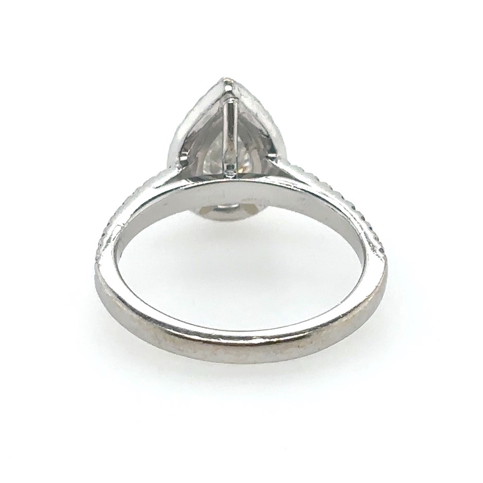1.32ct Pear Cut Dia. F/SI1 With GIA Cert. & 0.40ct Forty Stones Round Dia. F/SI1 Ring 18K White Gold