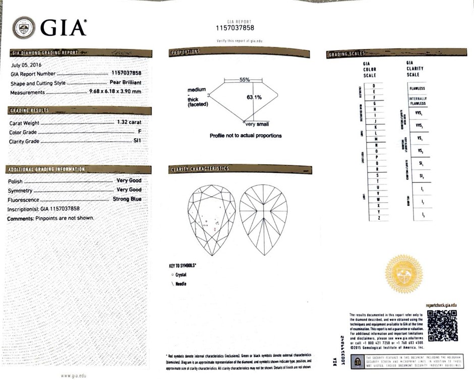 The Certificate of Authenticity means that the actual item for sale has been assessed by a fully qualified specialist jewellery valuer. The specialist jewellery valuer requires knowledge of gemmology, jewellery manufacture, precious metal markets, world gem markets, supply and demand factors both overseas and within Australia, taxation law requirements, general retail practices and the final combination of all the above factors in the principle and procedures of a jewellery valuation. They inspect and assess the jewellery item using a hand lens taking note of several key factors-