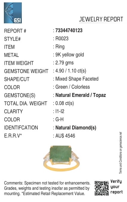 Yellow Gold Natural Emerald & Diamond Ring with Valuation