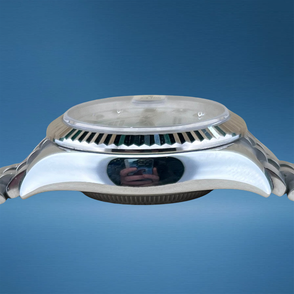 The Rolex Datejust 28 reference 279174 is a refined modern interpretation of Rolex’s most enduring design, presented in elegant, contemporary proportions. Crafted in Rolesor, combining Oystersteel with an 18k white gold fluted bezel, this model offers a perfect balance of durability and luxury. The iridescent mother-of-pearl dial adds natural depth and luminosity, ensuring each piece is subtly unique. A sophisticated and versatile timepiece, it is ideally suited to both everyday wear and formal occasions.